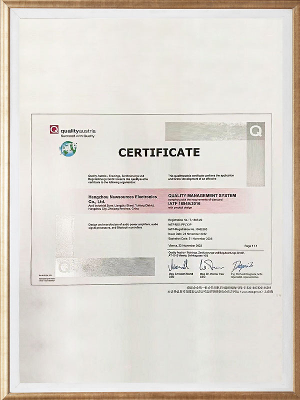 • شهادة نظام إدارة الجودة IATF16949 • شهادة براءة اختراع المنتج • الشهادة الفخرية للمؤسسات المبتكرة الإقليمية